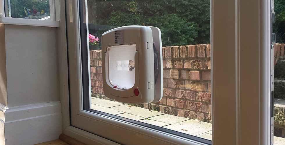 Manufacture a double glazed unit with a pet door in it. We are sure we can accommodate most requests. In order to cut a circular hole in a glass pane , The SureFlap Microchip Cat Door identifies cats using their unique identification microchip, ... Retrieve Full Source